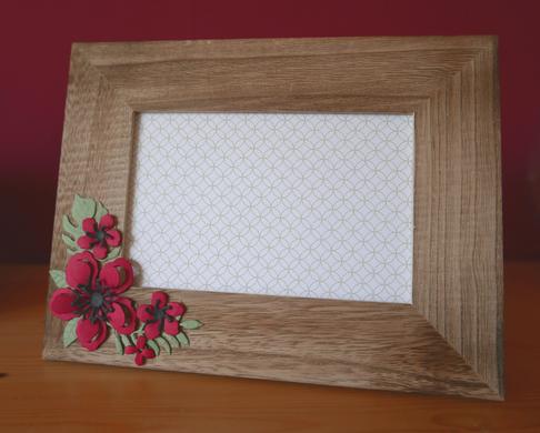 Met Stampin' Up! kun je niet alleen kaarten maken maar ook allerlei voorwerpen versieren. Hier heb ik een fotolijstje versierd met bloemen gemaakt met de Botanical Builder Framelits Dies.