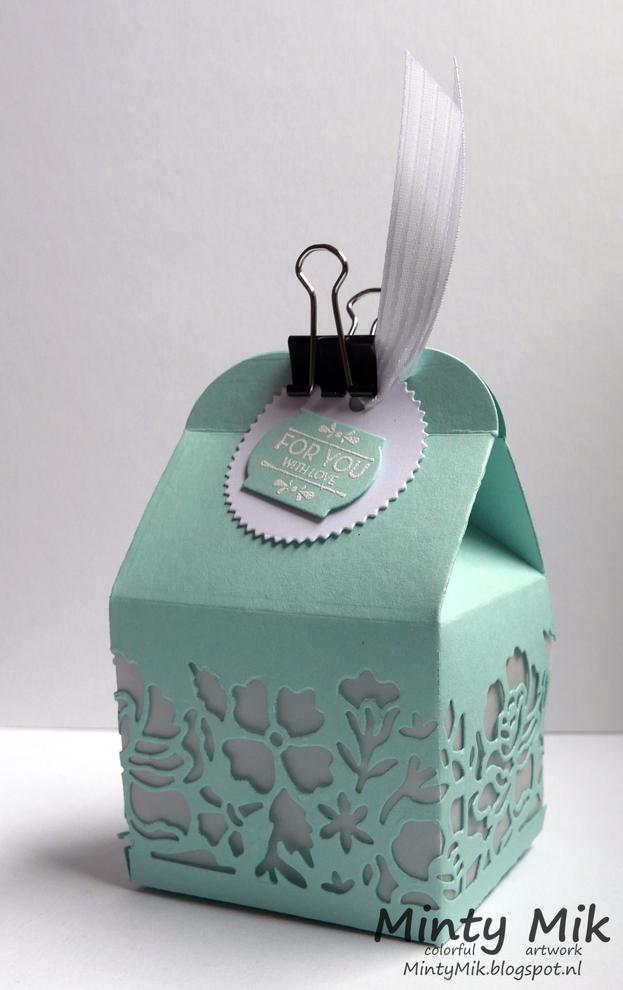 De tekst komt uit de Party with Cake set en is gestempeld met Island Indigo inkt.José had voor mij dit leuke doosje gemaakt. Binnenin zit een waxinelichtje op een batterijtje wat een erg leuk effect geeft.