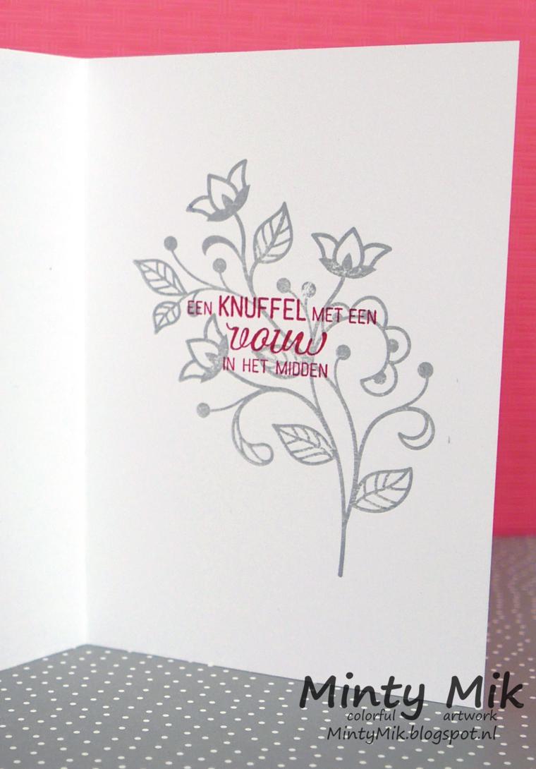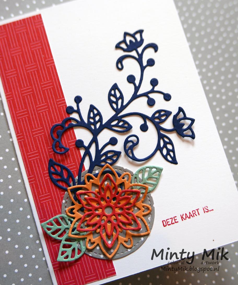 For this BlogHop I played with the Dutch version of the Flourishing Phrases stampset and the Flourish Thinlits Dies. I also used the Carried away DSP from the Sale-a-bration folder.